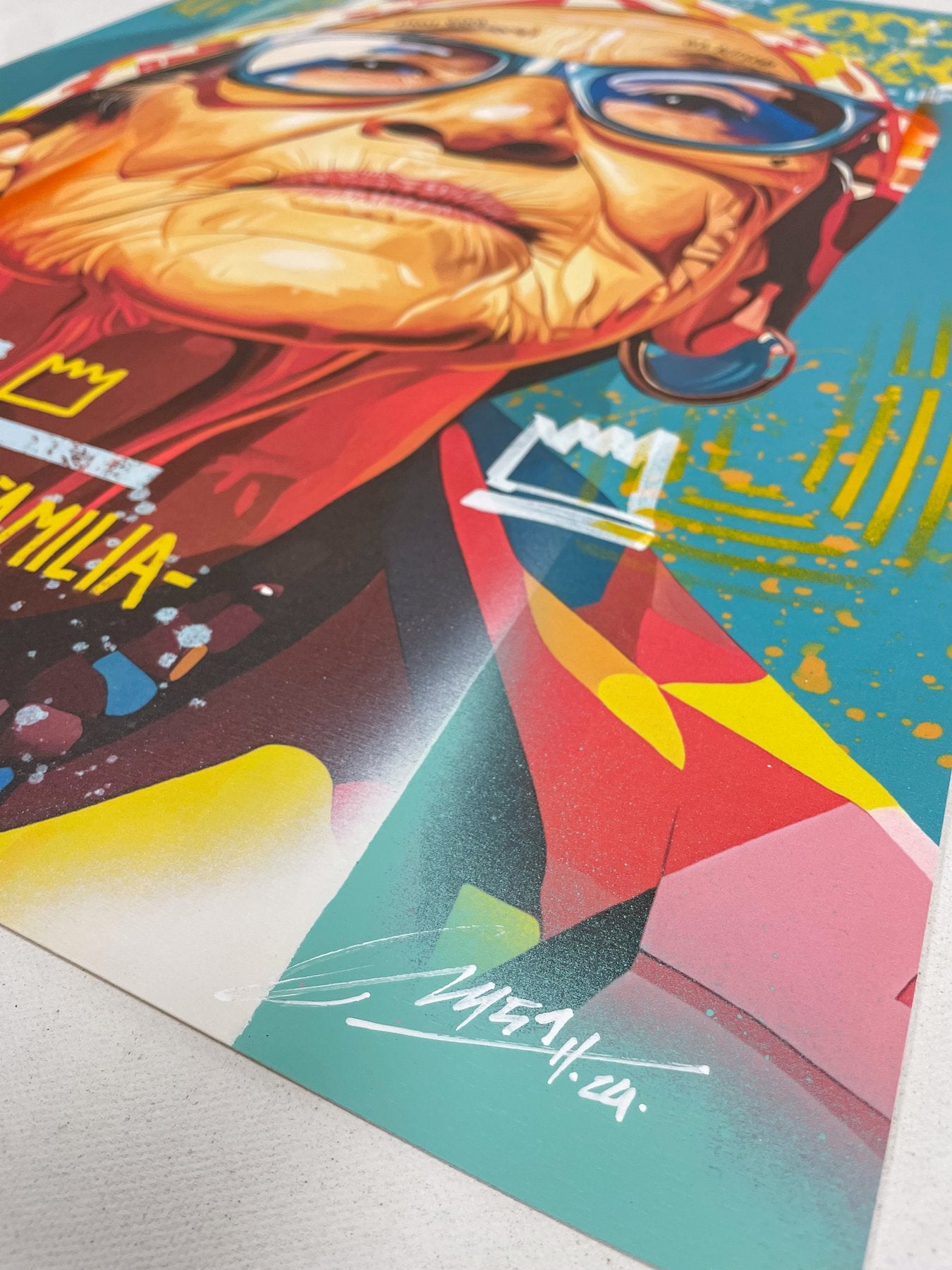 - Medium: Giclée, acrylic paint, markers, acrylic, spray paint on fine art paper (320g)
