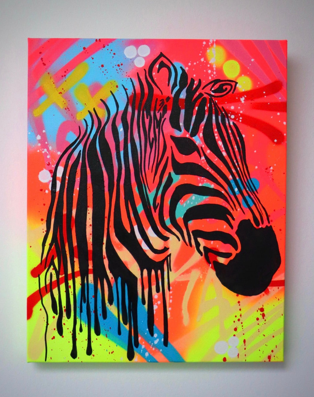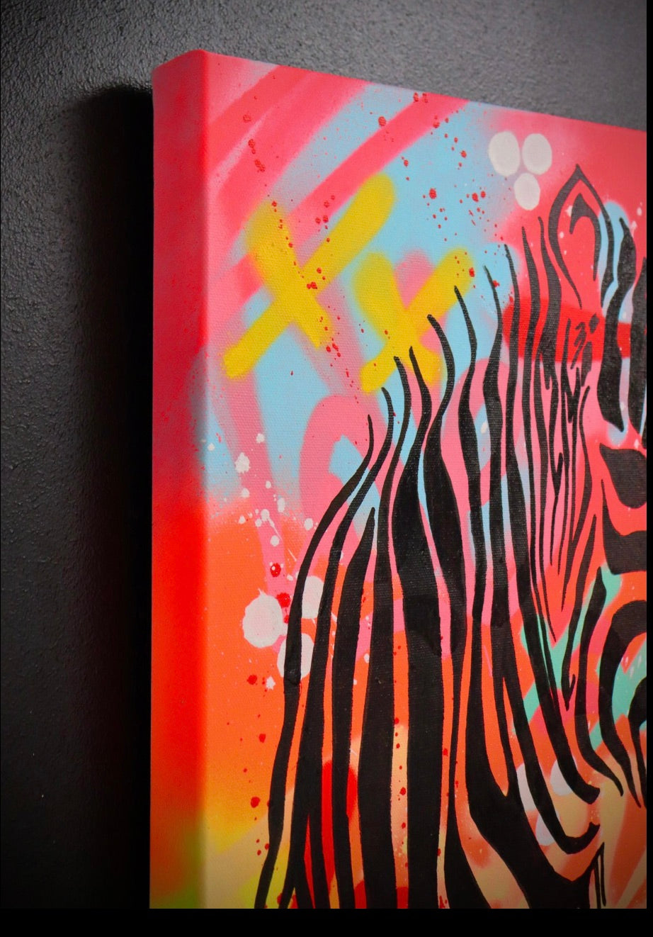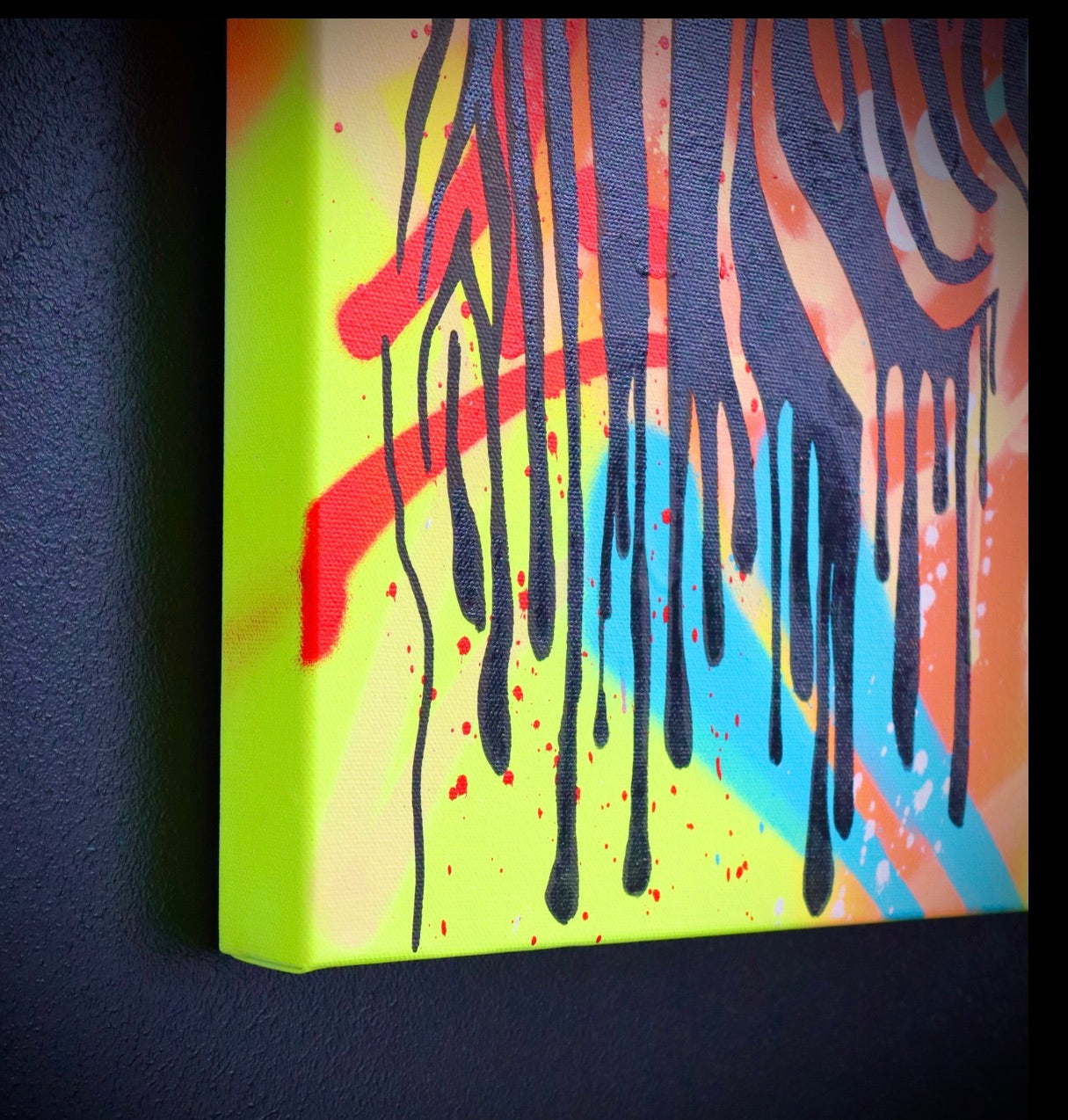 - Medium: Spray paint, acrylic, and marker on high-quality cotton canvas