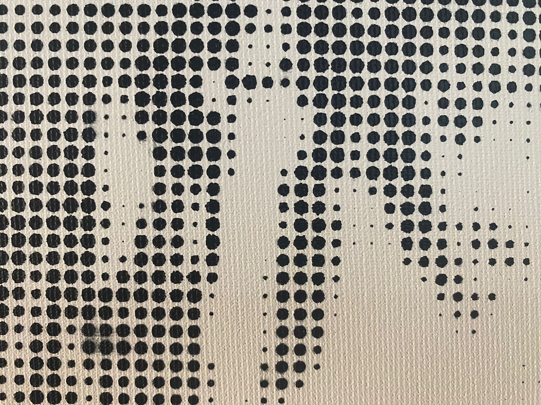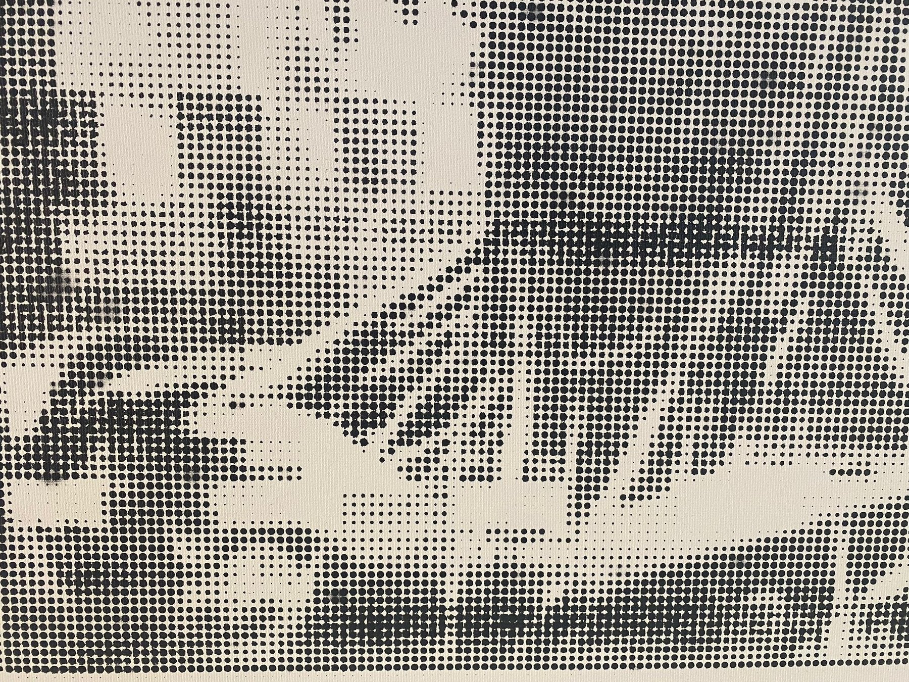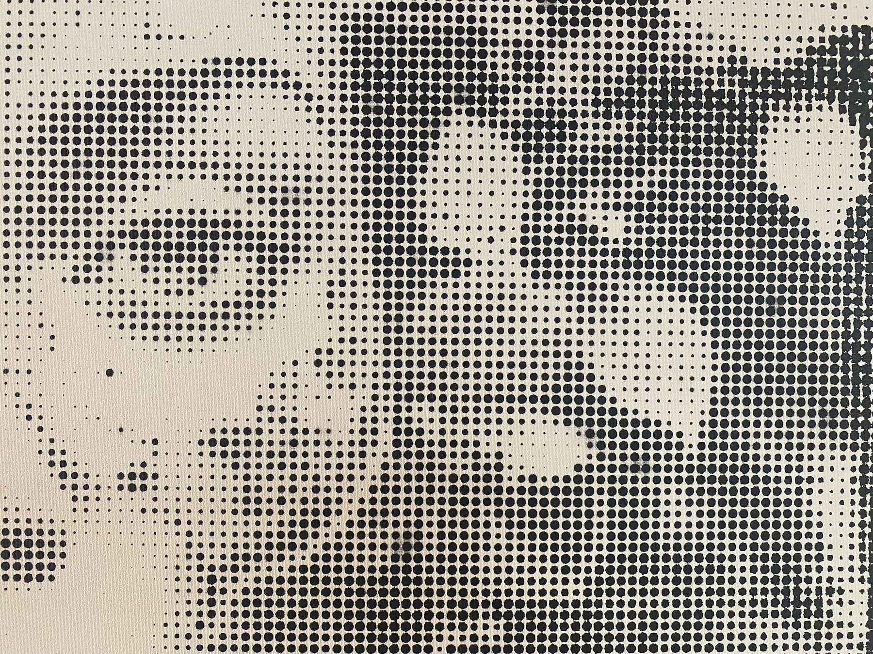 - Medium: Original hand-painted artwork using stencil and spray paint on canvas