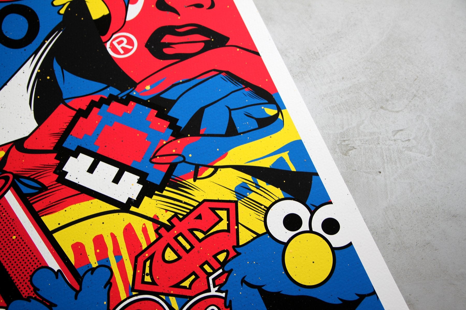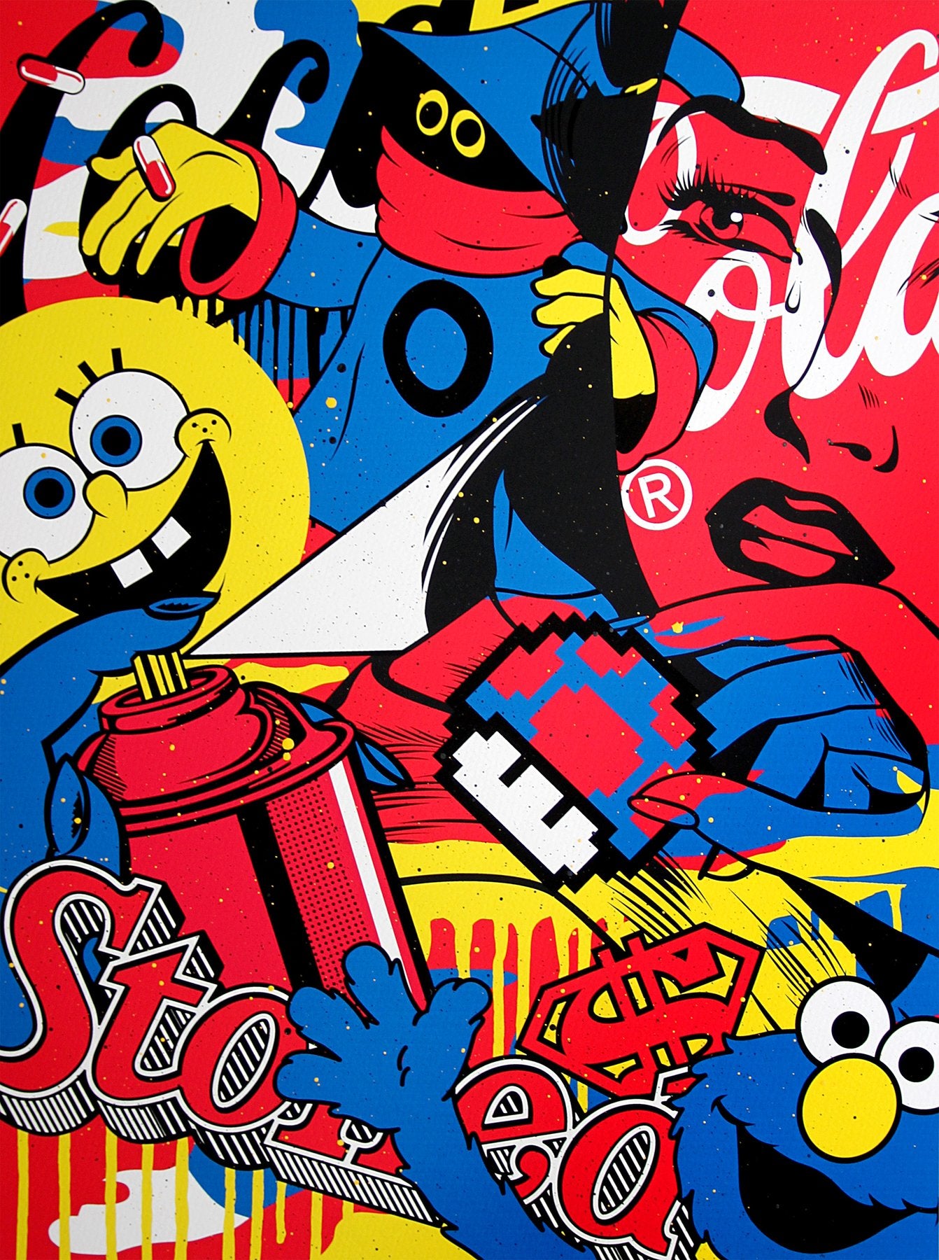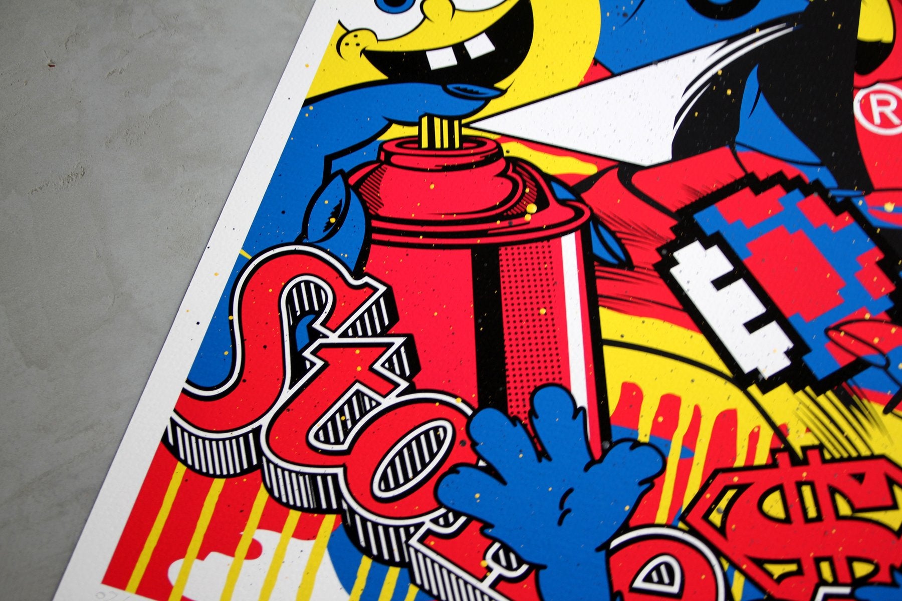 - Medium: Spray paint & real giclée print (pigment ink) on archival matte textured paper (320g)