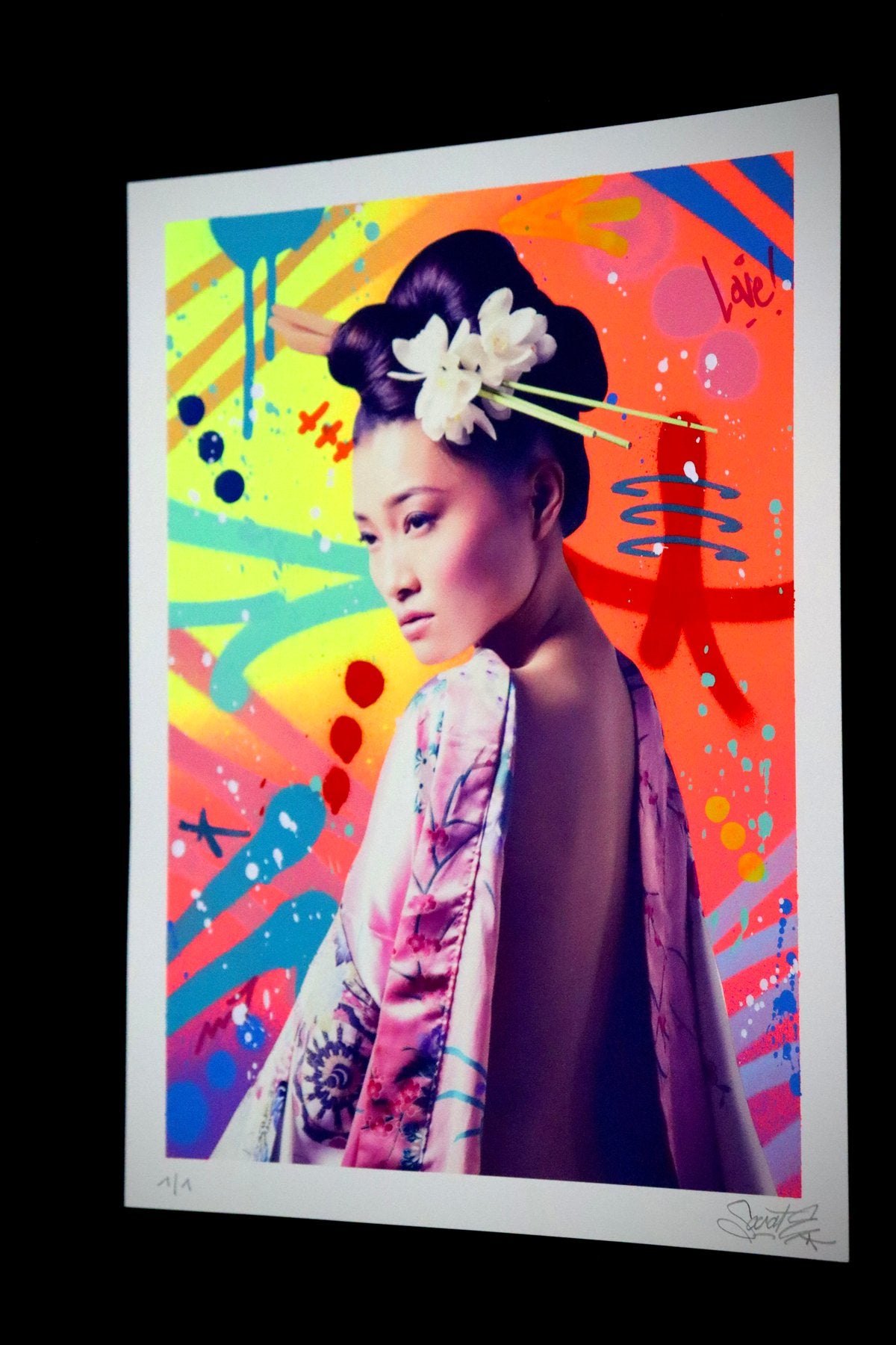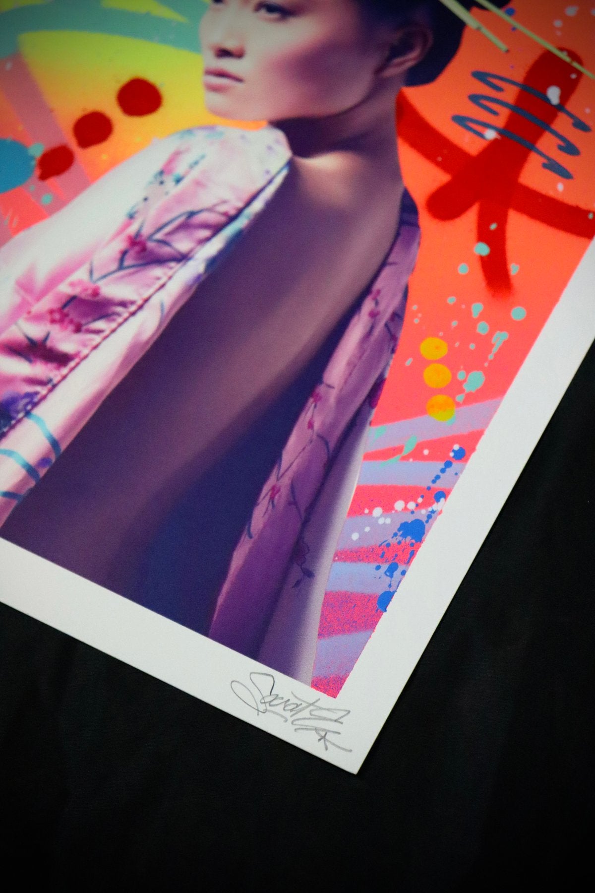 - Medium: Hand-painted background, spray paint, acrylic, and Posca on 300g paper
