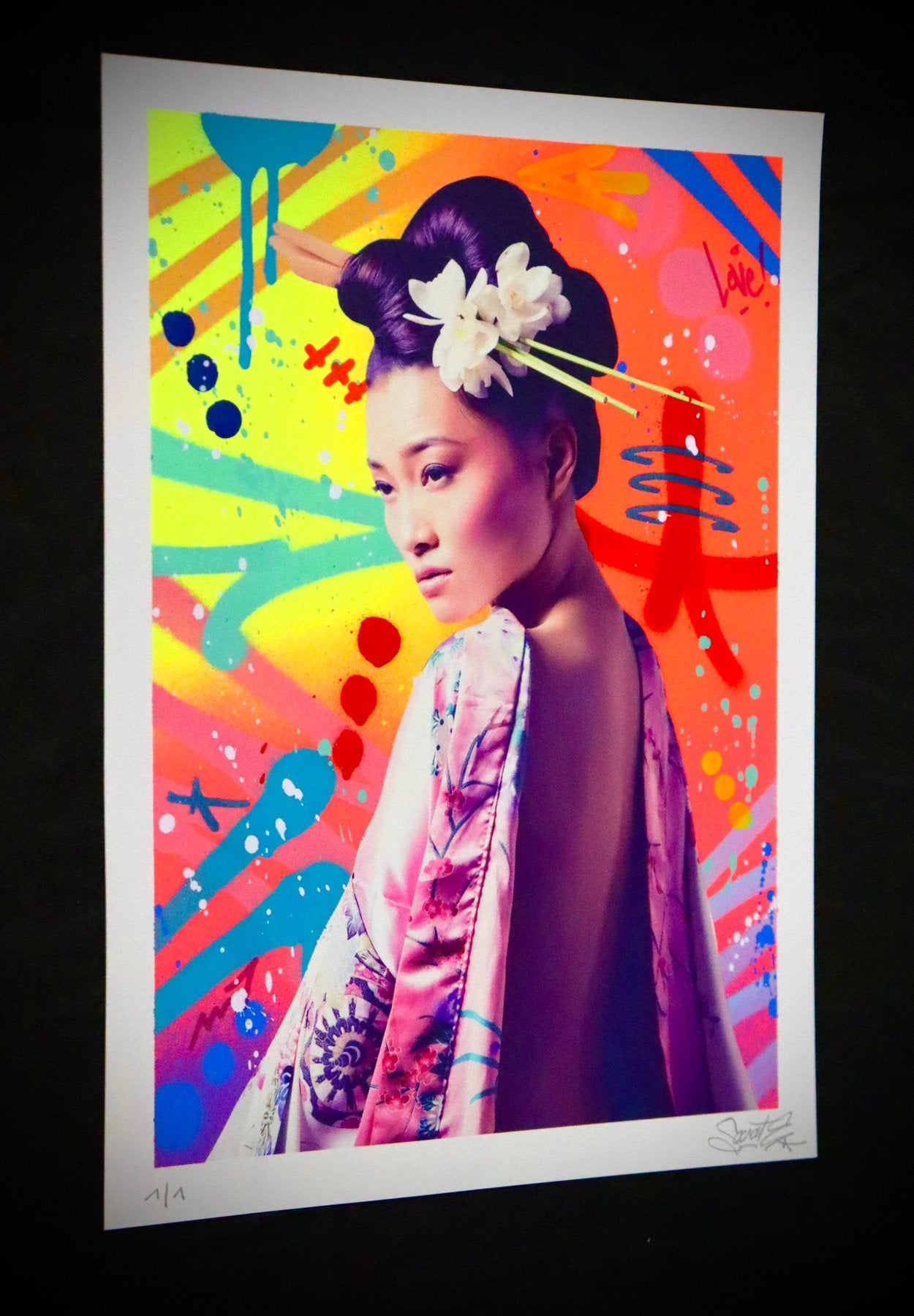 Wildflower is a unique, one-of-a-kind piece by Socrate, featuring a stunning combination of hand-painted backgrounds, spray paint, acrylic, and Posca markers on high-quality 300g paper. Signed and numbered as a one-off edition, this artwork is an exceptional addition to any contemporary collection.